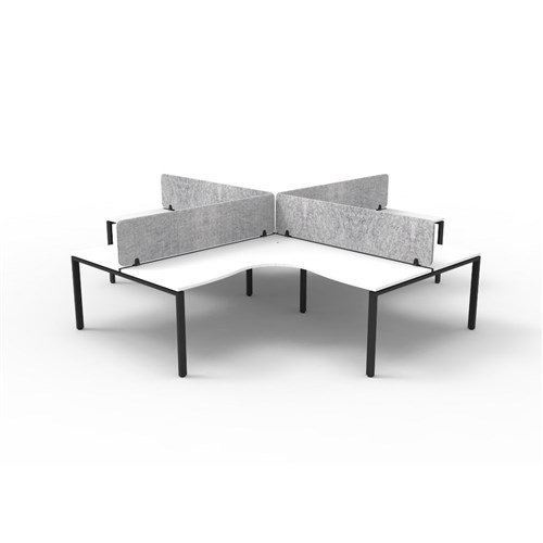 4 person corner workstation POD with White top and Black Satin frame, Grey Eco screen.