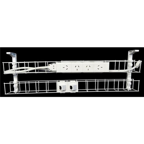 Rapidline Dual Tier Cable Basket Kit 1250mm 4GPO+2Data + 2m Interconnecting Lead White