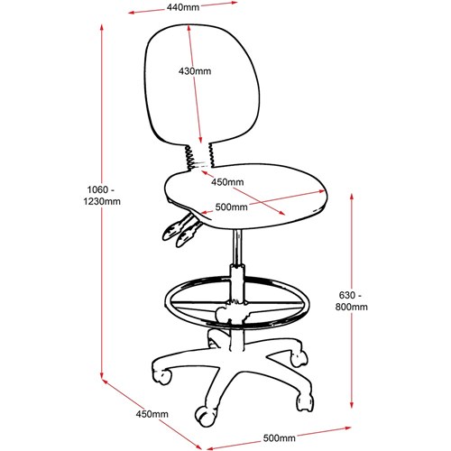 Chair Dimensions: Seat 500W x 450D x Back 430H x Seat 630-800mmH.