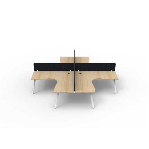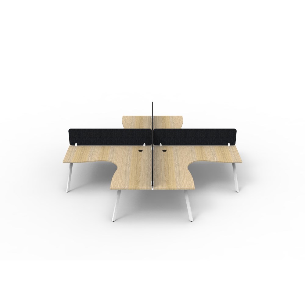 4 person corner workstation POD with Natural Oak top, Black Eco screen.