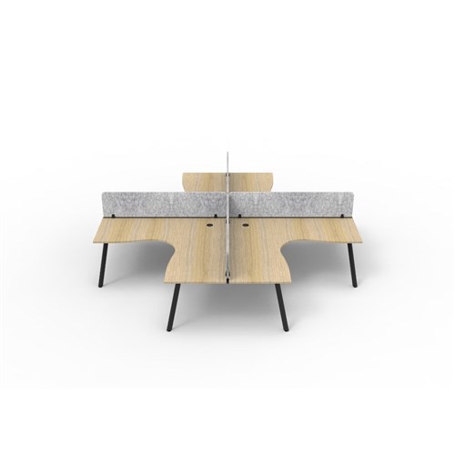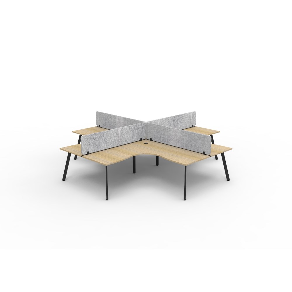 4 person corner workstation POD with Natural Oak top, Grey Eco screen.