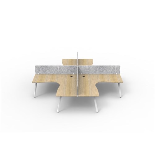 4 person corner workstation POD with Natural Oak top, Grey Eco screen.