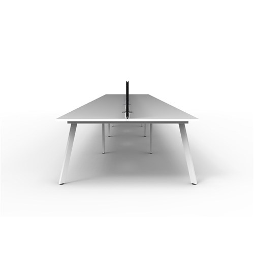 10 person double sided workstation with Natural White top and White Satin frame, Black Eco screen.