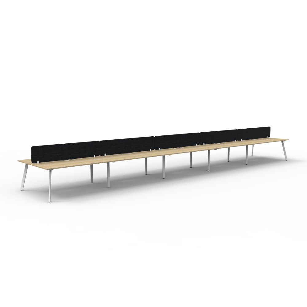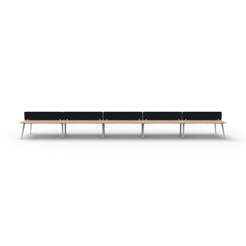 10 person double sided workstation with Natural Oak top and White Satin frame, Black Eco screen.