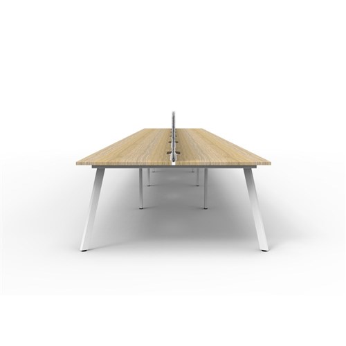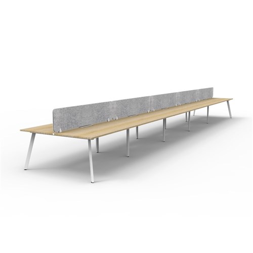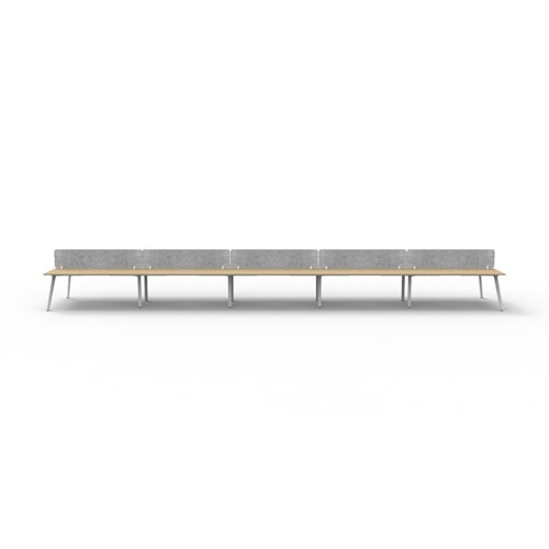 10 person double sided workstation with Natural Oak top and White Satin frame, Grey Eco screen.