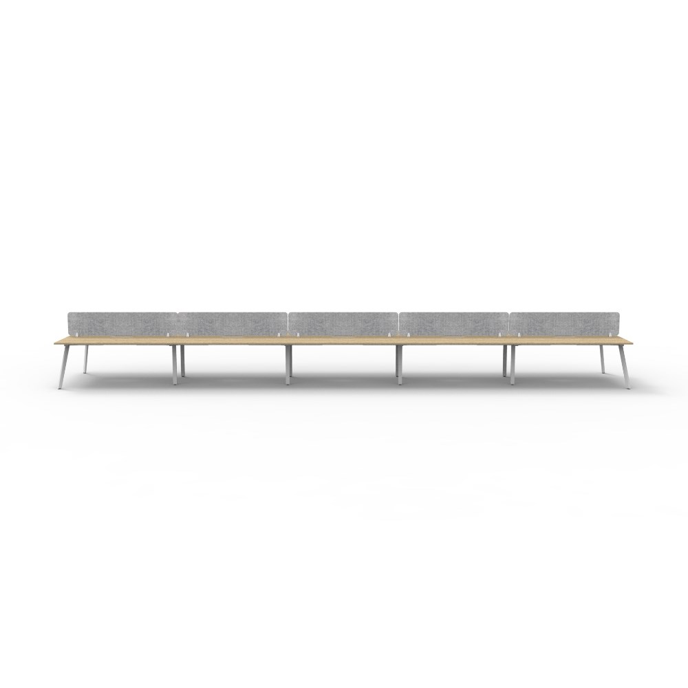 10 person double sided workstation with Natural Oak top and White Satin frame, Grey Eco screen.