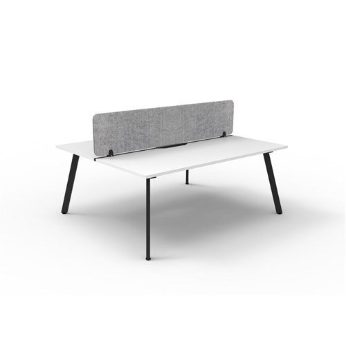 2 person double sided workstation with Natural White top and Black Satin frame, Grey Eco screen.