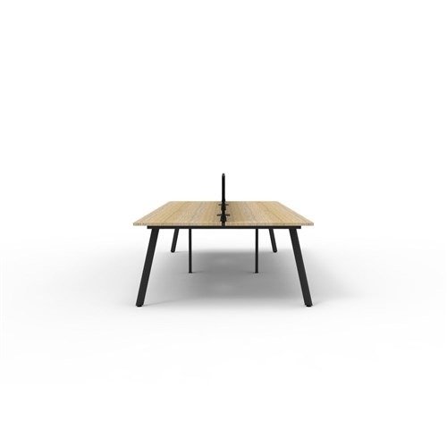 4 person double sided workstation with Natural Oak top and Black Satin frame, Black Eco screen.