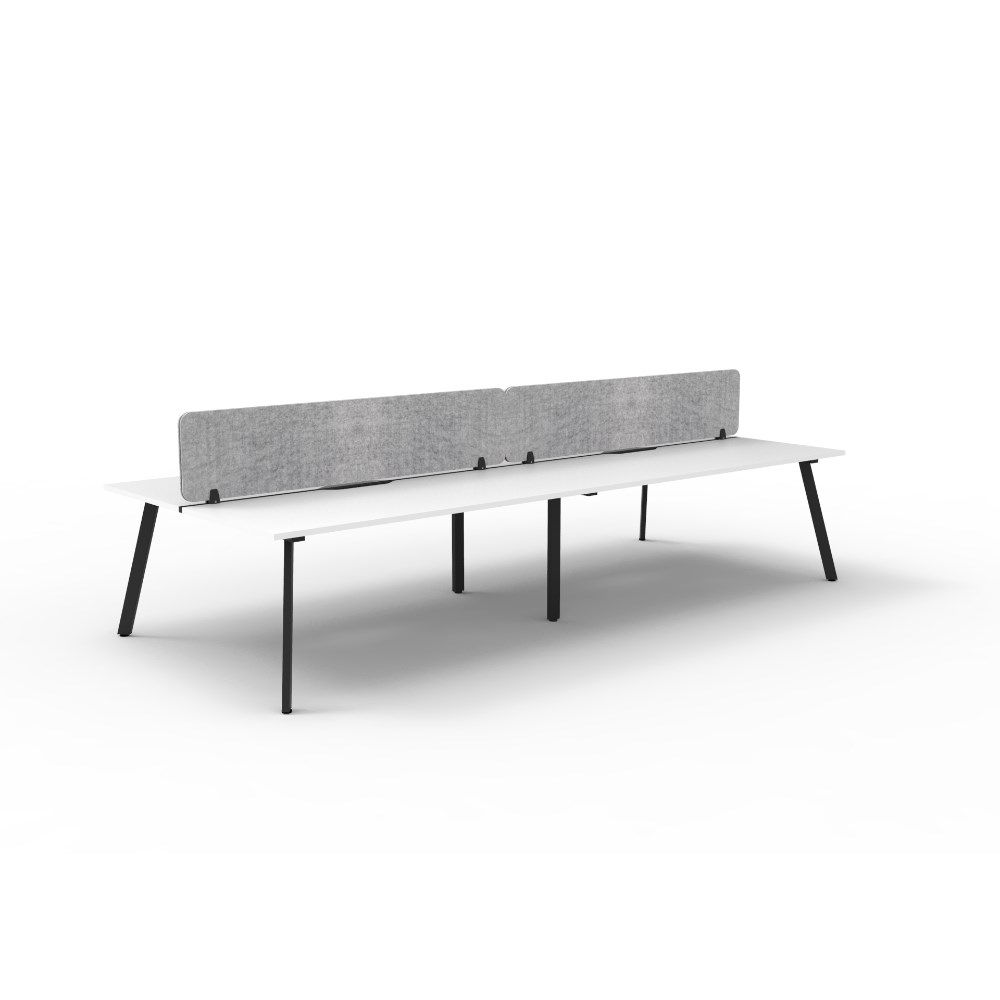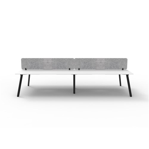 4 person double sided workstation with Natural White top and Black Satin frame, Grey Eco screen.