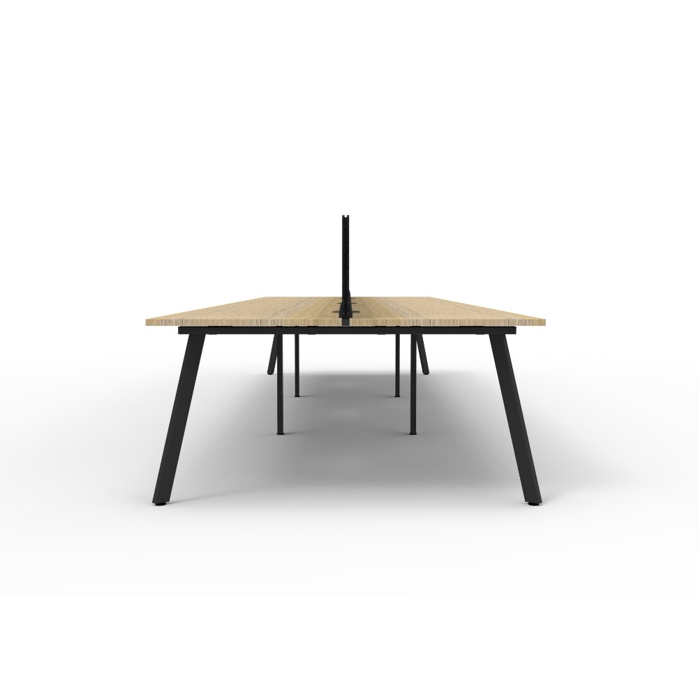 6 person double sided workstation with Natural Oak top and Black Satin frame, Black Eco screen.