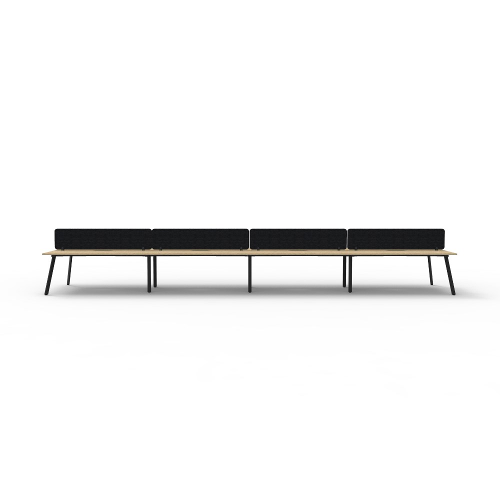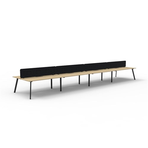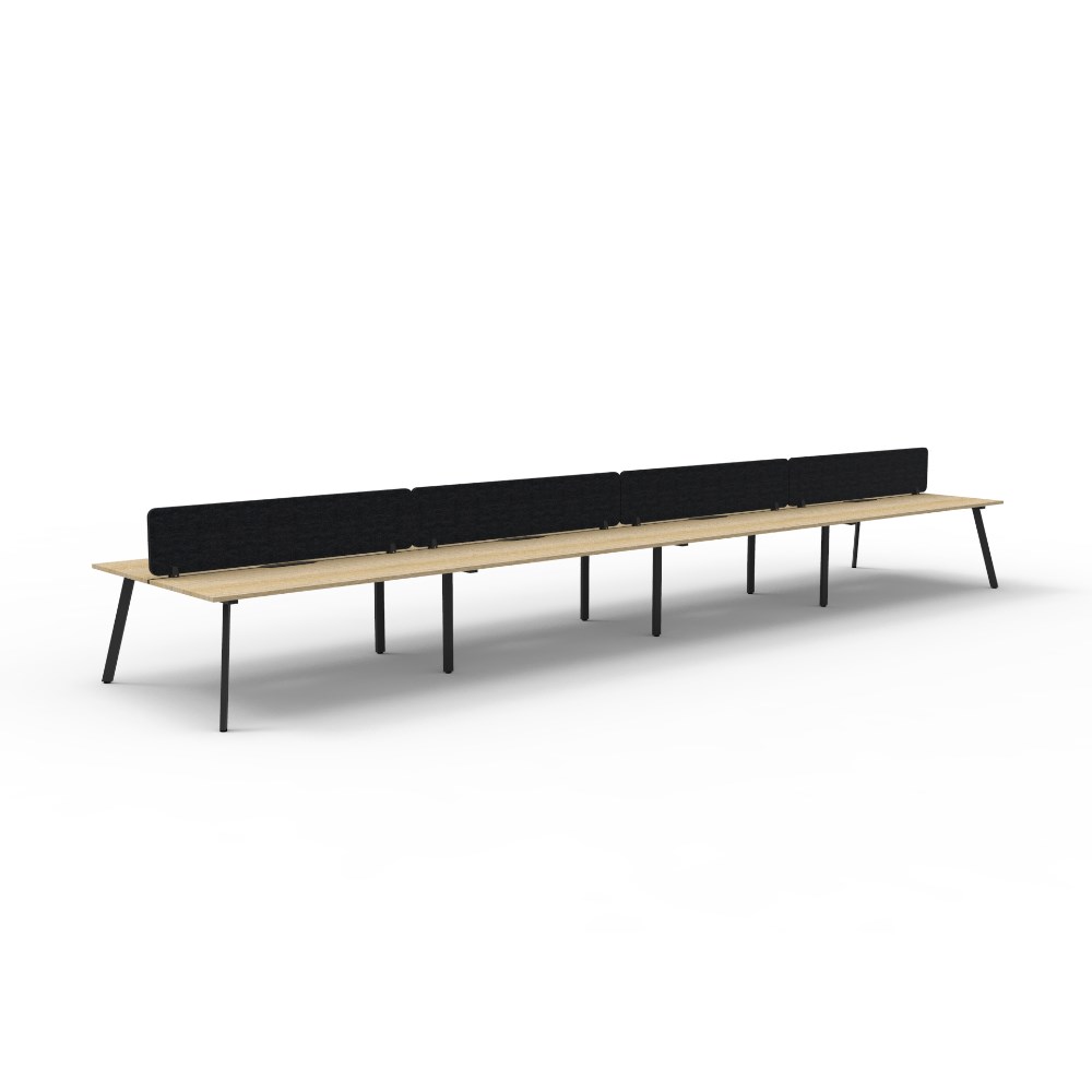 8 person double sided workstation with Natural Oak top and Black Satin frame, Black Eco screen.