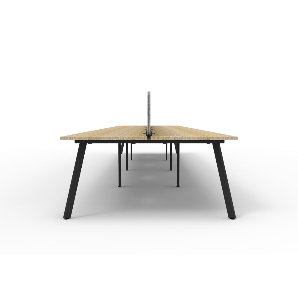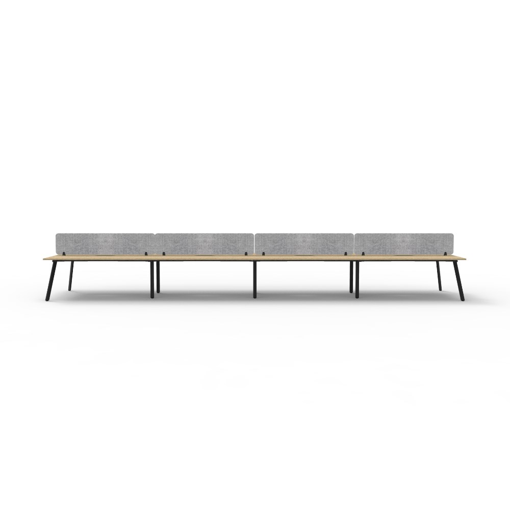 8 person double sided workstation with Natural Oak top and Black Satin frame, Grey Eco screen.