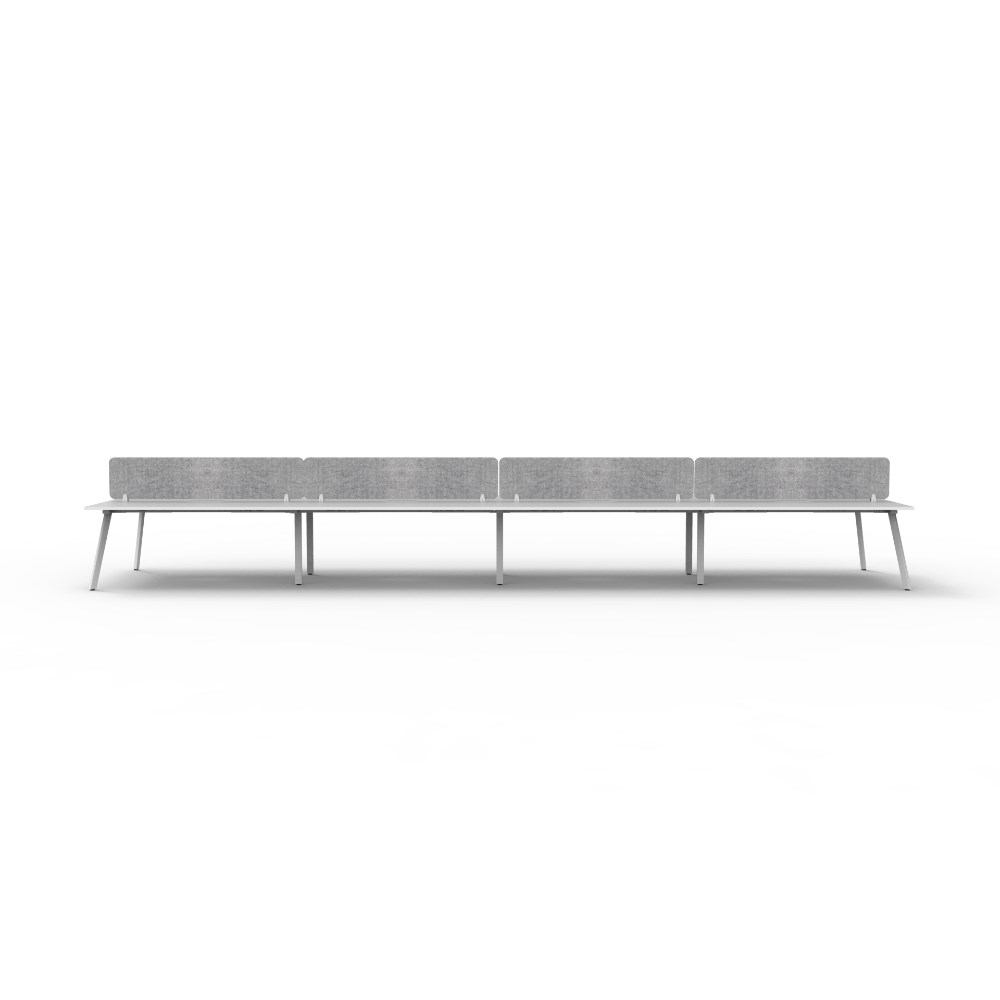 8 person double sided workstation with Natural White top and White Satin frame, Grey Eco screen.