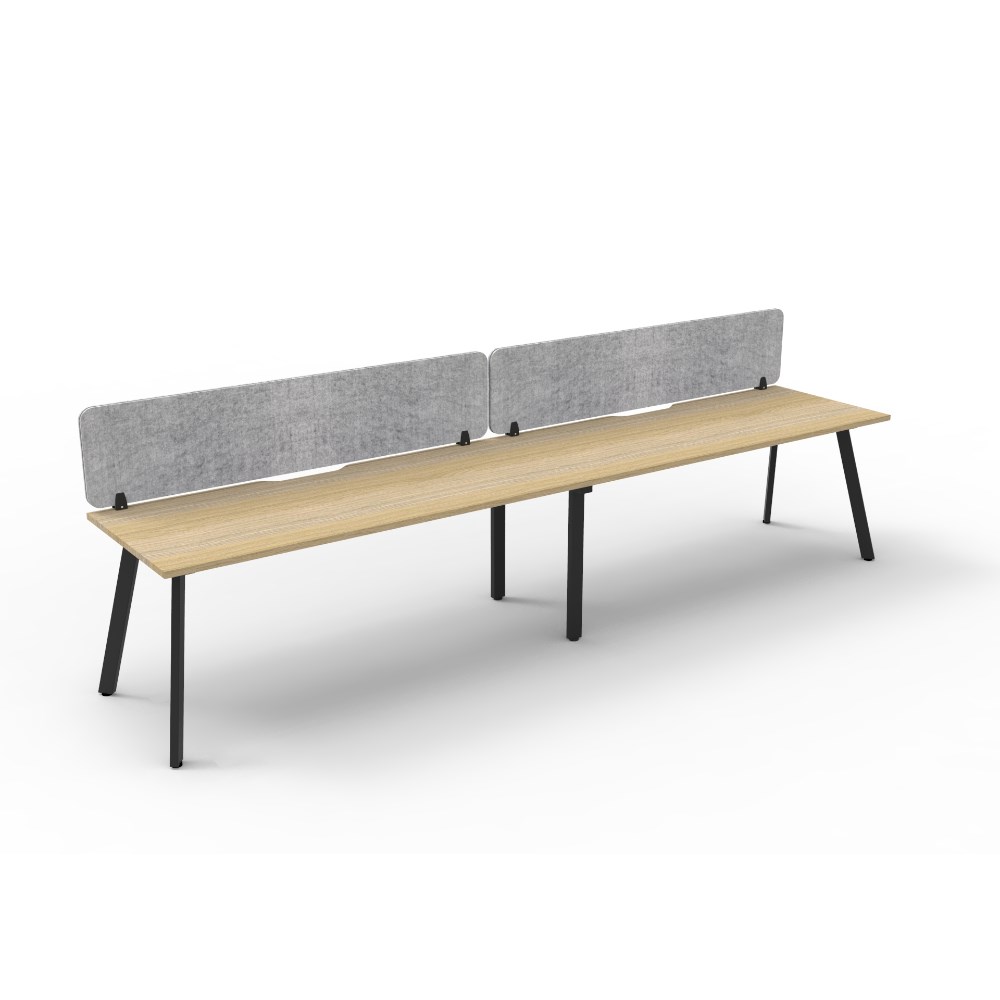 2 person single sided workstation with Natural Oak top and Black Satin frame, Grey Eco screen.