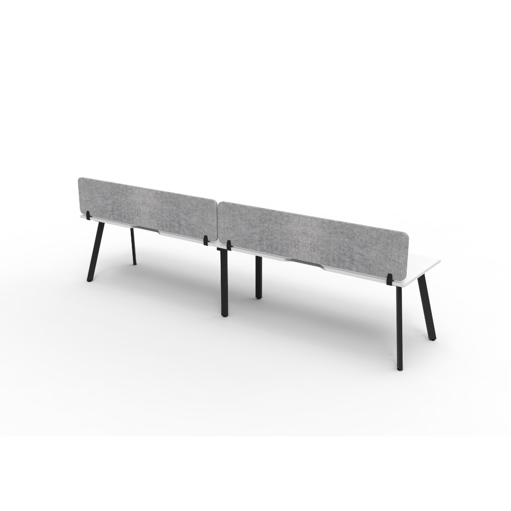 2 person single sided workstation with Natural White top and Black Satin frame, Grey Eco screen.