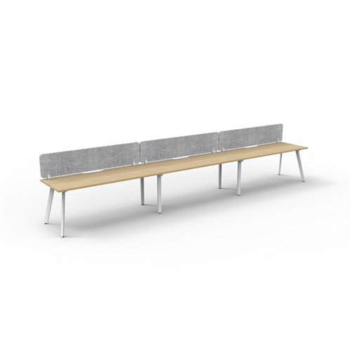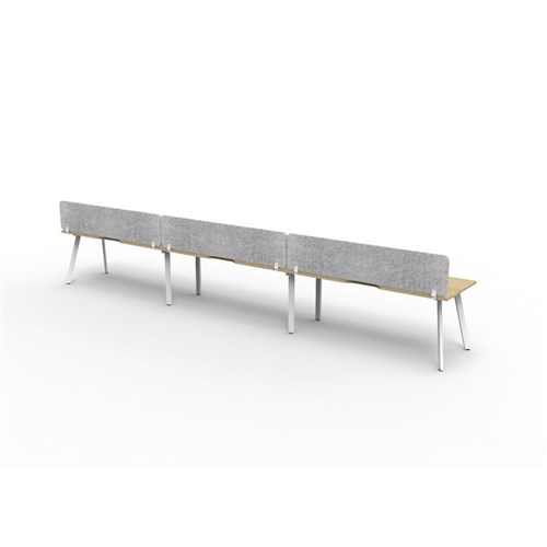 3 person single sided workstation with Natural Oak top and White Satin frame, Grey Eco screen.