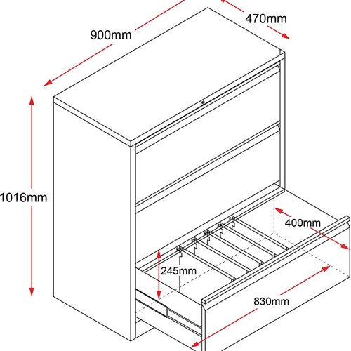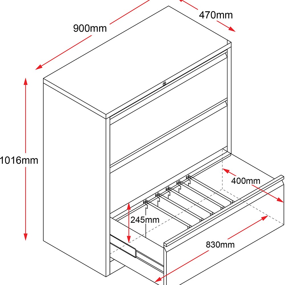 Rapidline Go Lateral Filing Cabinet 3 Drawer 900W x 473D x 1016mmH White