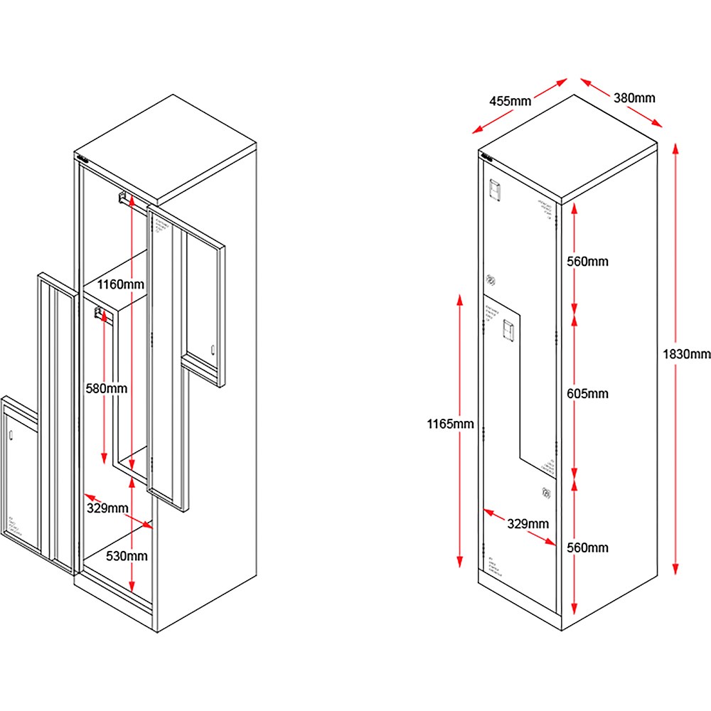 Rapidline Go Locker 2 Step Door 380W x 455D x 1830mmH Silver Grey