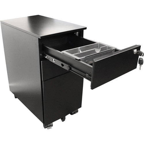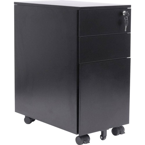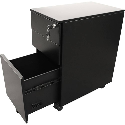 Rapidline Go Steel Slimline Mobile Pedestal 2 Drawer 1 File 300Wx475Dx610mmH Black