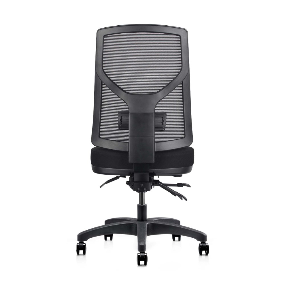 Featuring a heavy-duty mechanism with seat slide, height-adjustable lumbar support.