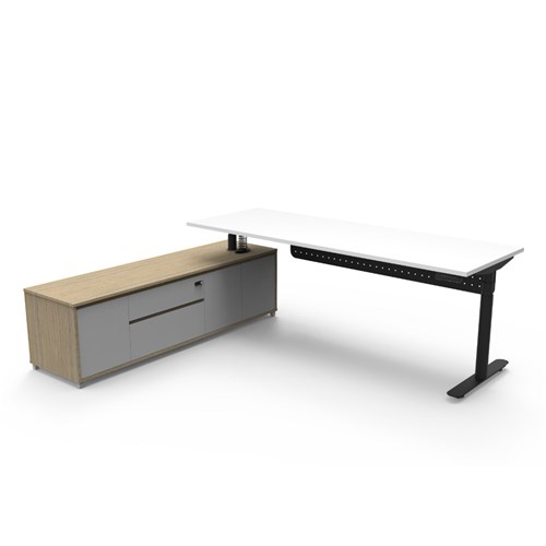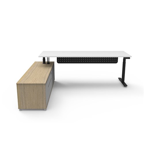 Rapidline Halo+ Executive Desk + LHS Cabinet + Panel 2270W x 1936D x 620-1270mmH White/Blk