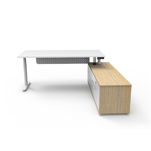 Rapidline Halo+ Executive Desk + RHS Cabinet + Panel 2020W x 2011D x 620-1270mmH Oak/White