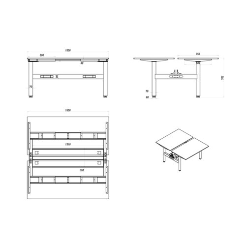 Per User Dimensions: 1500W x 750D x 730mmH.