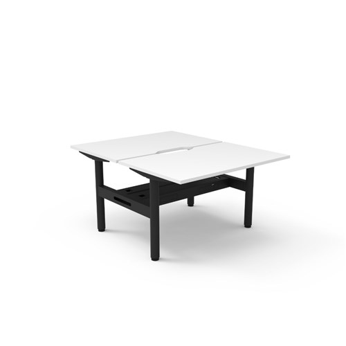 Natural White top Black Satin frame. Double sided workstation with cable tray.