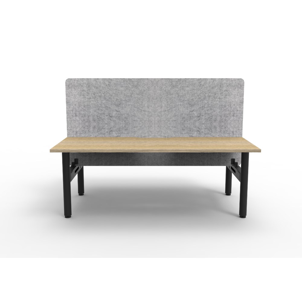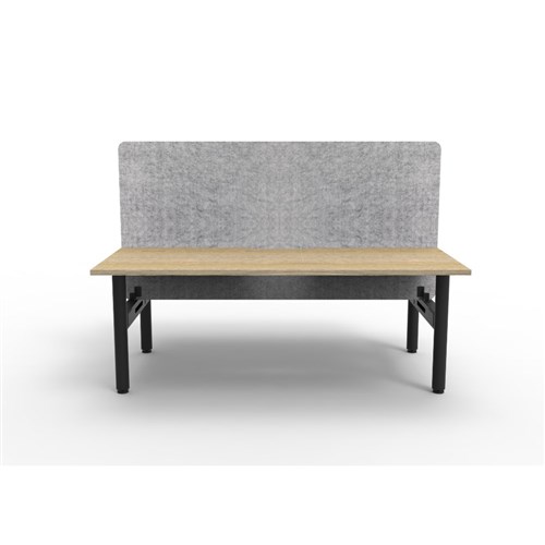 2 person back to back workstation with Natural Oak top and Black Satin frame, Grey Eco screen.