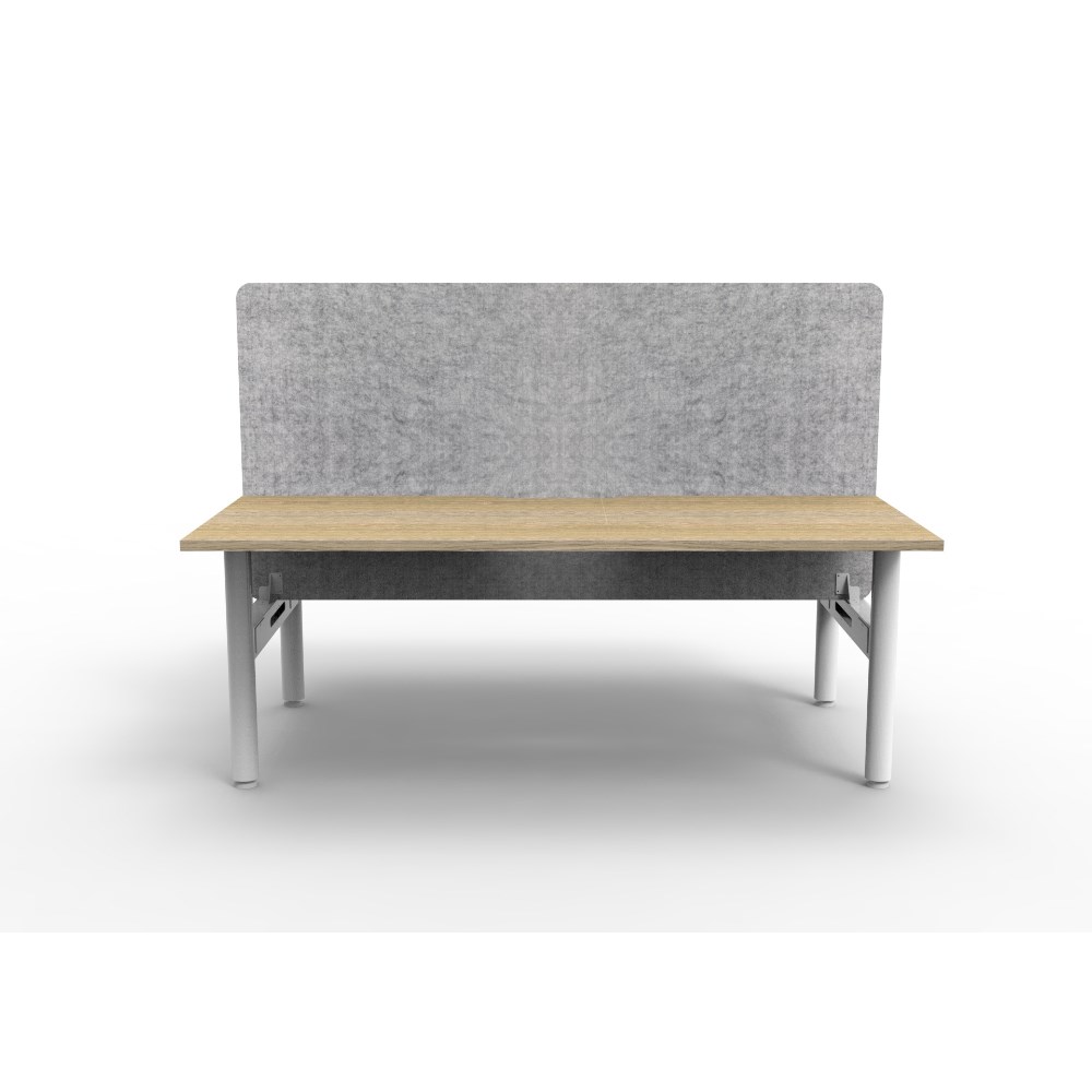 2 person back to back workstation with Natural Oak top and White Satin frame, Grey Eco screen.
