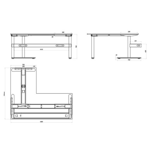 Desk Dimensions: 1800W x 1500W x 750D x 730mmH. Height With Screen: 1330mm.