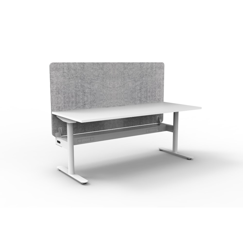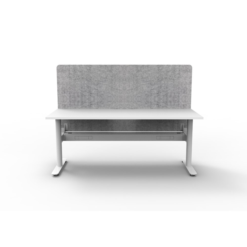 Single sided workstation with White top and White Satin frame, Grey Eco screen and cable tray.