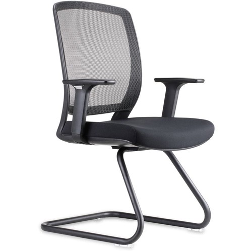 Mesh back visitor chair with ample seat and back size and adjustable arms, with modern black cantilever base. Ideal visitor chair to go with any mesh back desk chair or use as meeting chair.