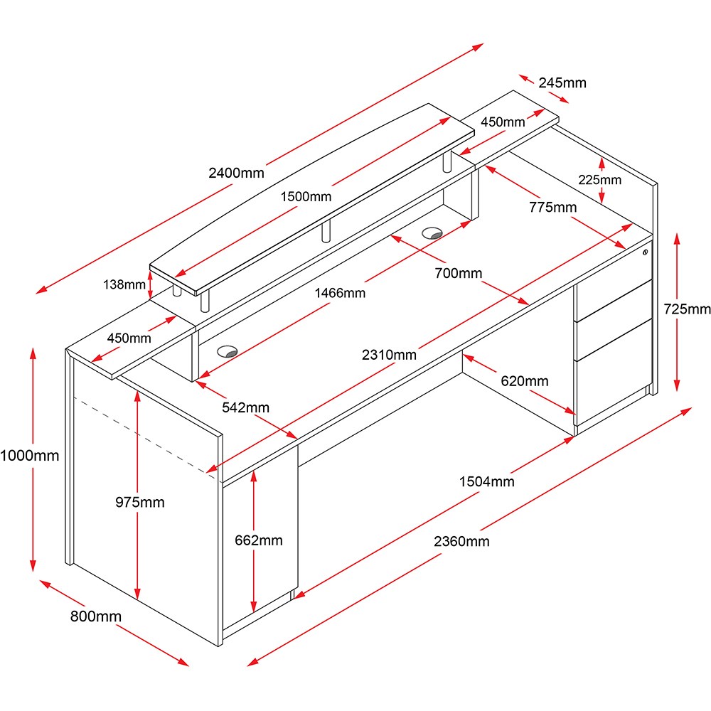 Unit Dimensions: 2400mm W x 800mmD x 1150mmH.