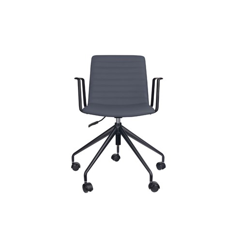 Rapidline Pixel Breakout Room Chair With Arms Black Legs French Navy PU Leather Seat