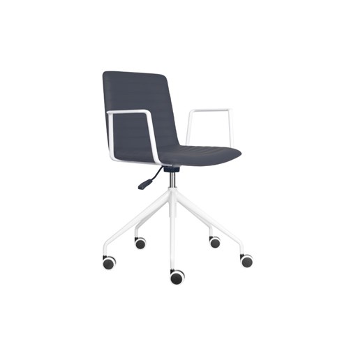 Rapidline Pixel Breakout Room Chair With Arms White Legs French Navy PU Leather Seat