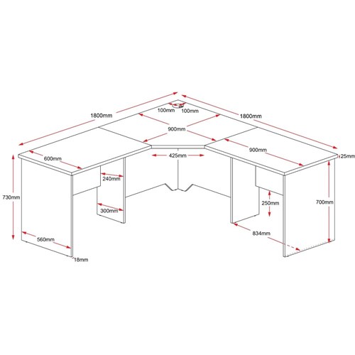 Rapidline Rapid Worker Corner Workstation 1800/1800W x 600D x 730mmH Cherry And Ironstone