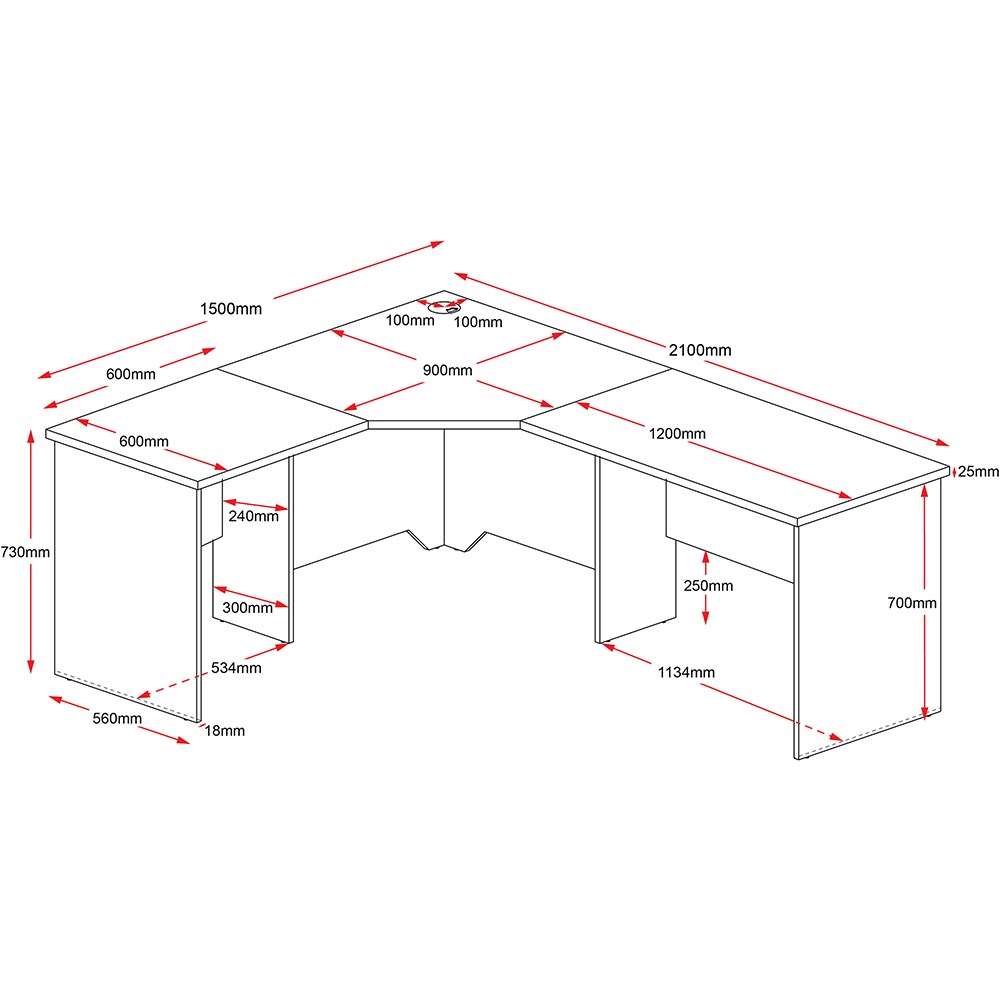 Rapidline Rapid Worker Corner Workstation 2100/1500W x 600D x 730mmH Cherry And Ironstone