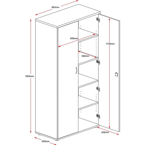 The cupboard is fully lockable with 3 adjustable shelves and 1 fixed shelf.