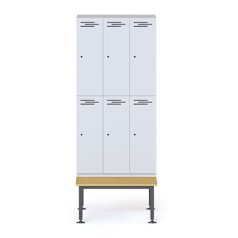 Allows the user to sit in front of the locker to change whilst allowing for cleaning underneath the unit.