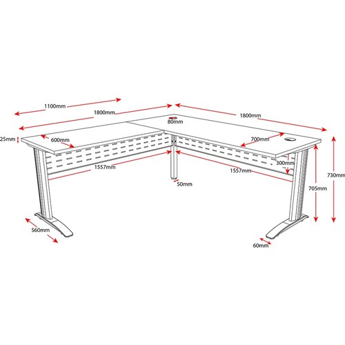 Rapidline Span Desk And Return 1800/1100W x 700/600D x 730mmH White/Silver