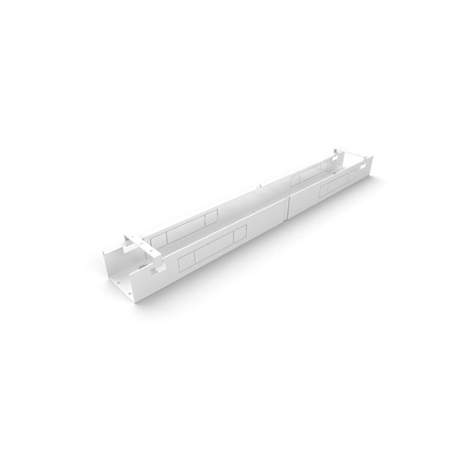 The adjustable width accommodates various desk sizes, while its design allows for the integration of power or data modules.