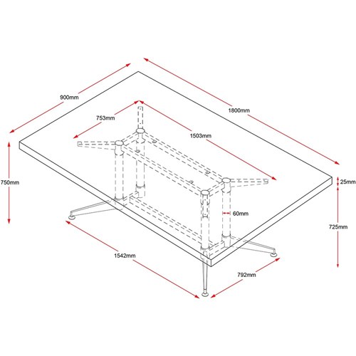 Rapidline Typhoon Boardroom Table 1800W x 900D x 750mmH Cherry Top Black Frame