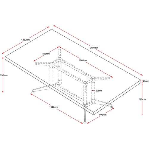 Rapidline Typhoon Boardroom Table 2400W x 1200D x 750mmH White Top Black Frame