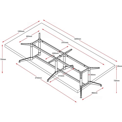 Rapidline Typhoon Boardroom Table 3200W x 1200D x 750mmH White Top Black Frame