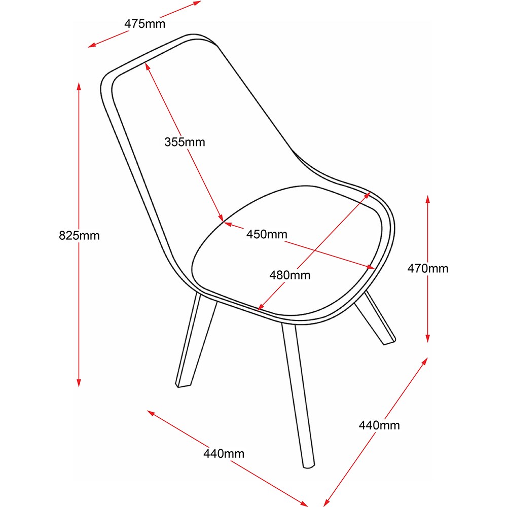 Chair Dimensions: 440W x 440D x 825mmH. Seat Height 470mm.