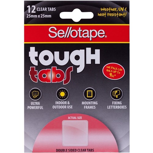 Sellotape Tough Tab 25x25mm 12 Tabs Clear