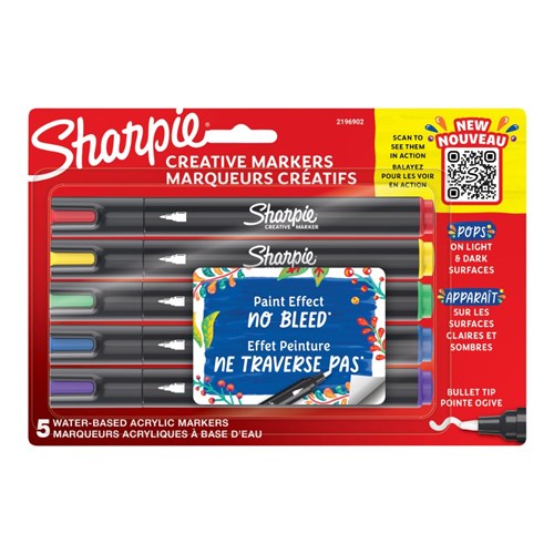 Sharpie Creative Water-Based Acrylic Markers Medium Bullet Tip Pack Of 5 Assorted