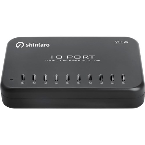 Shintaro 200W 10 Port GaN USB-C Charging Station Black