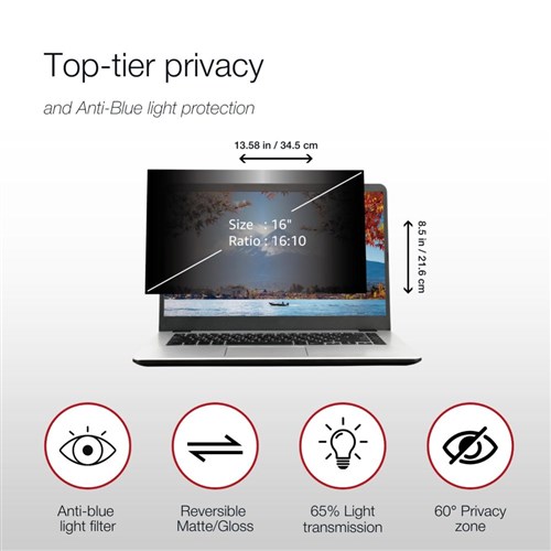 Privacy, blue light reduction and anti-glare technology.